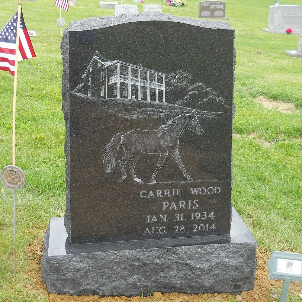 This unique headstone is a blend of modern and traditional styles. The sculpted face (front) is adorned with roses adding a graceful accent to this stone.